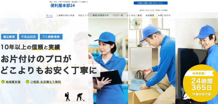 東京・埼玉・千葉・栃木・茨城・群馬と幅広いエリアで活躍する「便利屋本部24」は、10年以上の実績を誇る不用品回収・片付けサービスのプロ集団です。年間5000件以上の対応実績が信頼の証。ご家庭の不用品整理からゴミ屋敷の清掃、遺品整理まで、あらゆる“片付けのお困りごと”に柔軟に対応してくれます。
