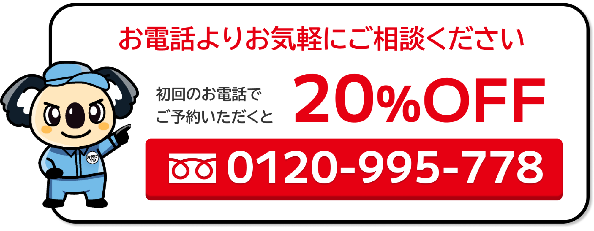 初回のお電話でご予約いただくと20%オフ!
