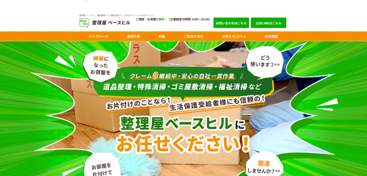 「整理屋ベースヒル」は、群馬県で不用品回収・遺品整理・特殊清掃まで一貫対応する信頼性の高い業者です。特徴は、一般廃棄物収集運搬や産業廃棄物処理業の許可、古物商や遺品整理士の資格を保持し、法令順守体制が徹底されています。